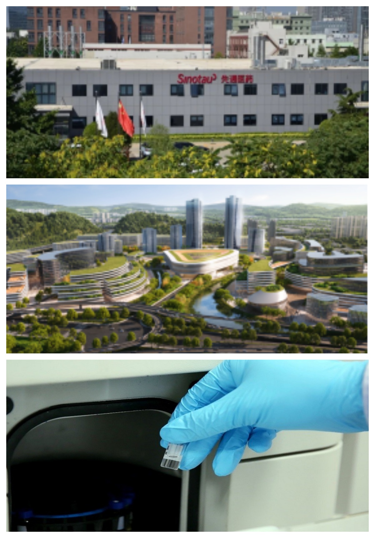 ▲ 健康基地灣區(qū)藥谷效果圖、丹諾醫(yī)藥新藥試驗、先通醫(yī)藥北京總部。