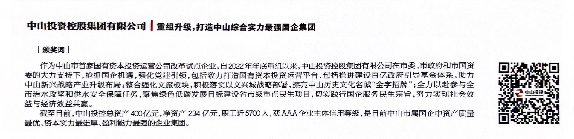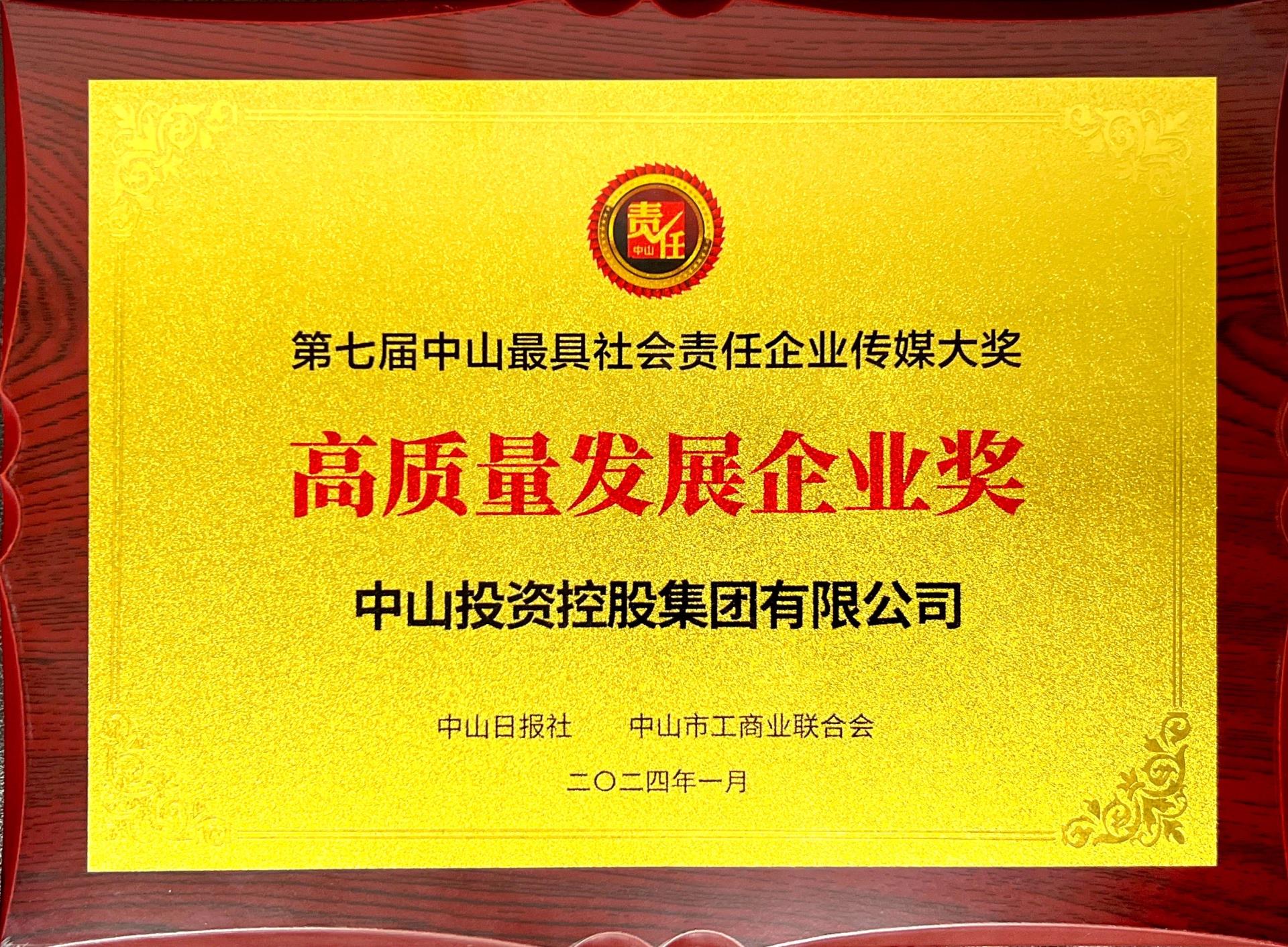 中山投控榮獲“高質(zhì)量發(fā)展企業(yè)獎(jiǎng)”