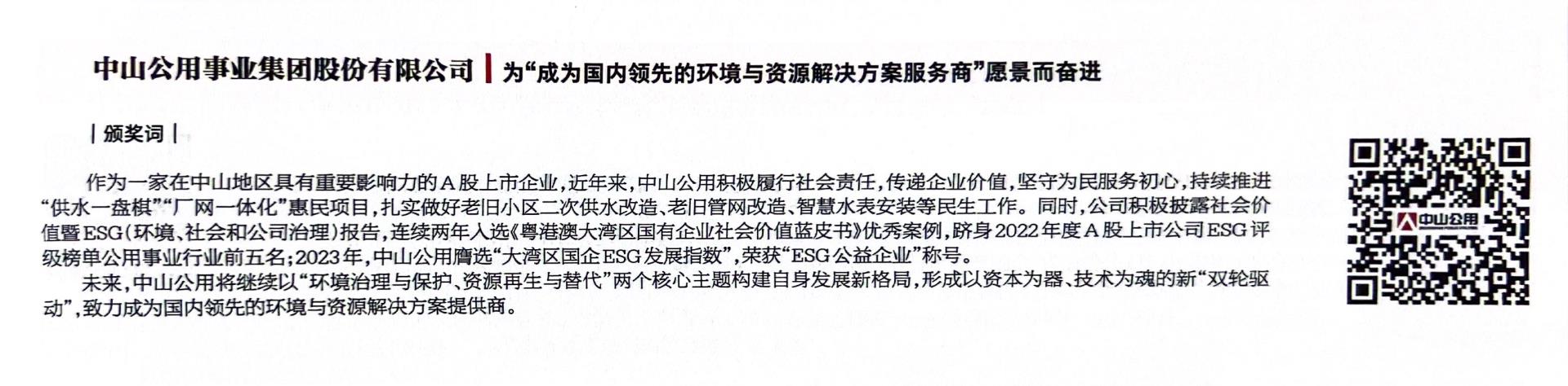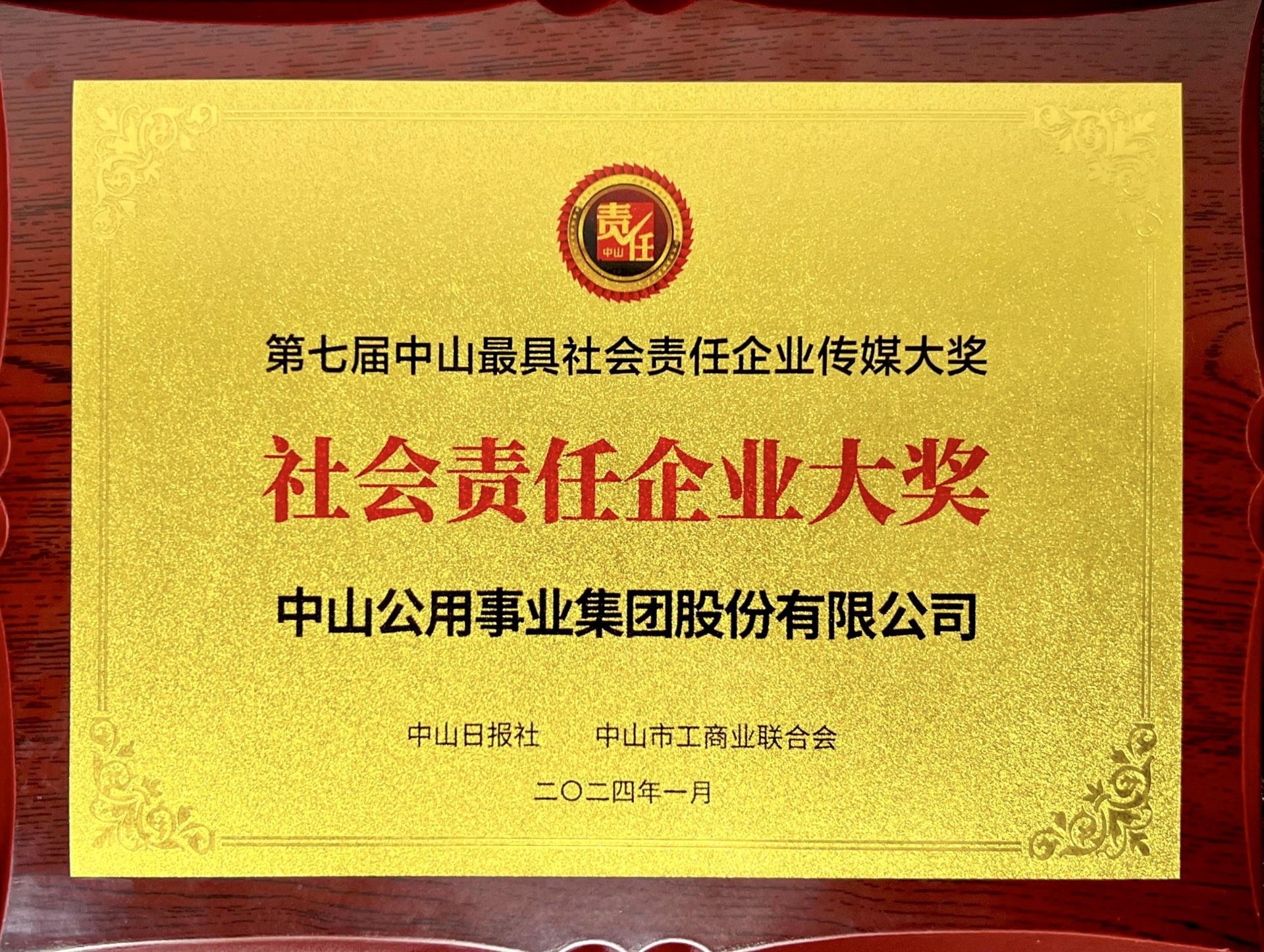 中山公用榮獲“社會(huì)責(zé)任企業(yè)大獎(jiǎng)”