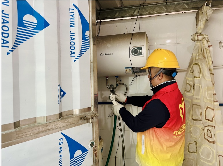 2月5日,南頭供水黨支部的黨員志愿者們來到80歲高齡的吳老太太家中,對用電設備設施進行了細致檢查。在發(fā)現(xiàn)熱水器花灑破損后,志愿者義務為老人更換了新設備,并叮囑老人日常安全用水用電注意事項。