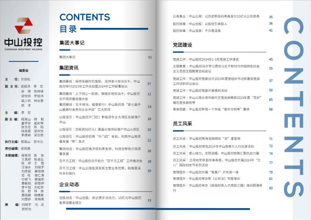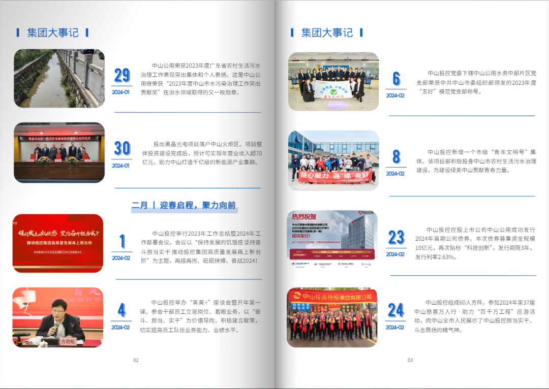“集團(tuán)資訊”欄目送上中山投控一季度亮點(diǎn)多多的“成績(jī)單”——開啟招商引資“開門紅”,成功招引5個(gè)、總投資近35億元的優(yōu)質(zhì)高新產(chǎn)業(yè)項(xiàng)目落地中山,培育新質(zhì)生產(chǎn)力;匯聚直接融資“金活水”,累計(jì)發(fā)行4期、共25億元公司債券,不斷刷新利率紀(jì)錄;發(fā)出謀篇布局“動(dòng)員令”,抓早抓實(shí)部署集團(tuán)年度工作、高質(zhì)量發(fā)展、百千萬(wàn)工程工作,為集團(tuán)2024年發(fā)展新篇作序。
