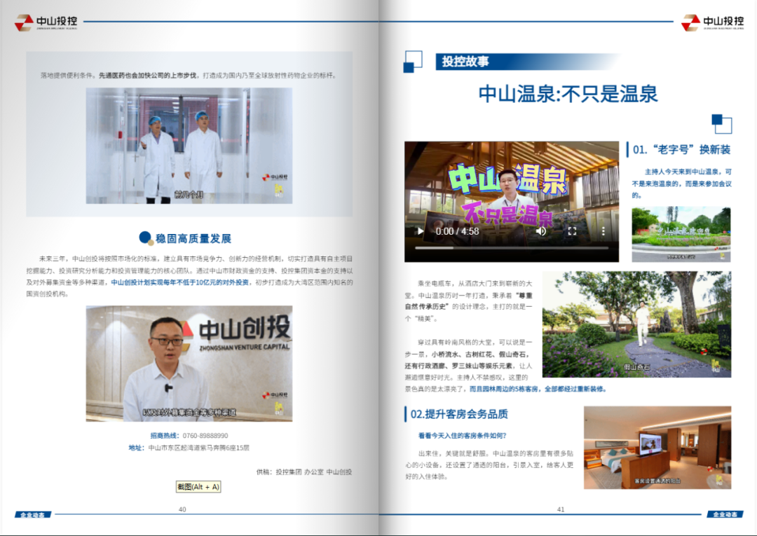 本期“企業(yè)動(dòng)態(tài)”欄目特別收錄了兩則“投控故事”系列視頻,開啟全新“視”界,一路記錄、一路分享企業(yè)創(chuàng)新發(fā)展的動(dòng)人篇章,帶您領(lǐng)略不一樣的中山溫泉、探訪中山創(chuàng)投的高科技“朋友圈”,講好投控故事,傳響投控聲音。