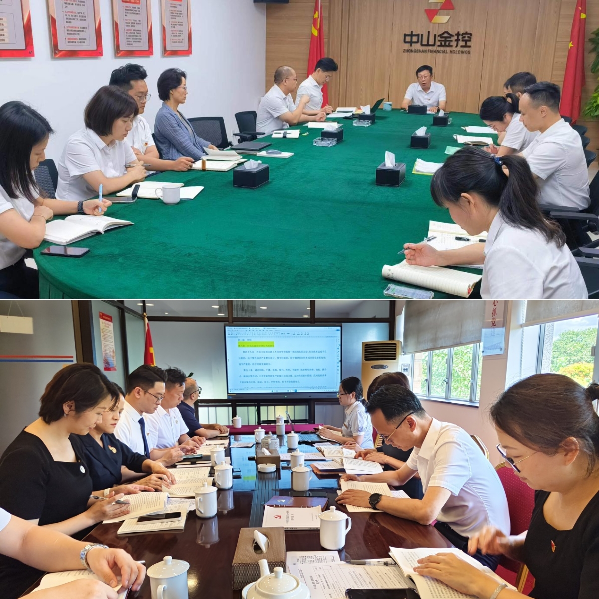 ▲7月1日、7月3日,中山溫泉黨支部和中山金控黨總支分別組織觀看警示教育片。(攝影:楊穎君、林蘇洲)